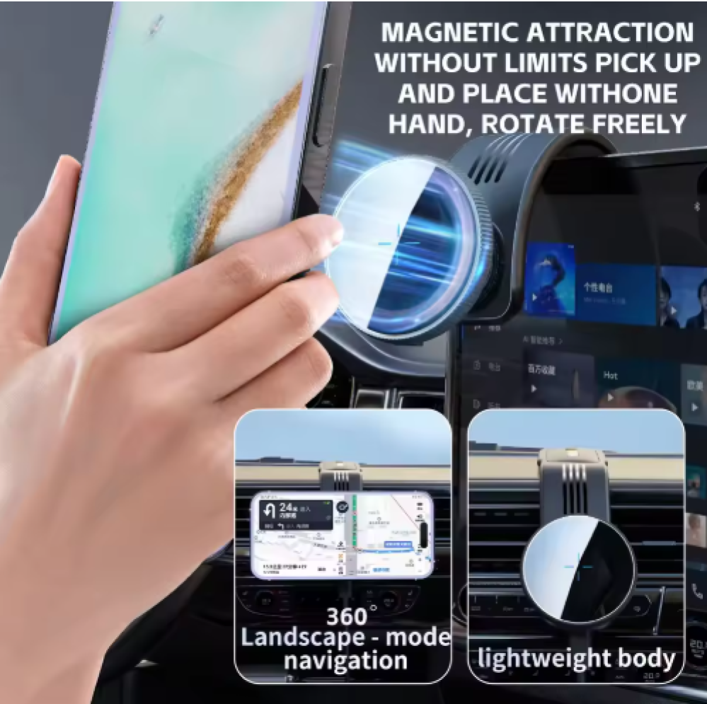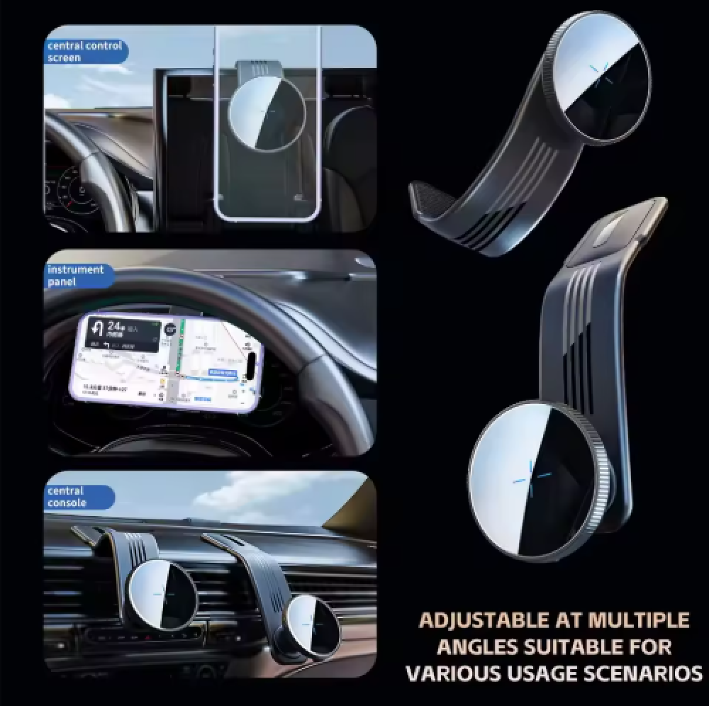 حامل جوال مغناطيسي للسيارة قابل للتعديل 360 درجة مع شاحن لاسلكي