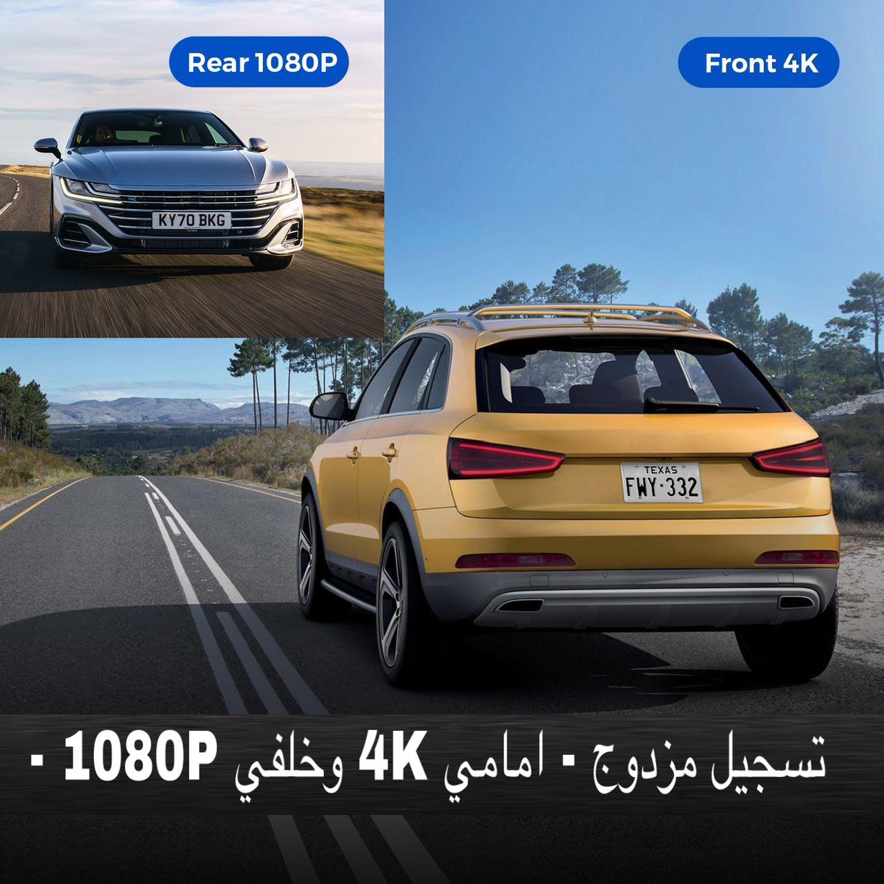 تسجيل امامي 4K وخلفي 1080P ، سجل مايجري امام سيارتك او خلفها في وقت واحد - مما يمنحك قيادة آمنة ومطمئنة بإذن الله لأن حقوقك محفوظة تماما